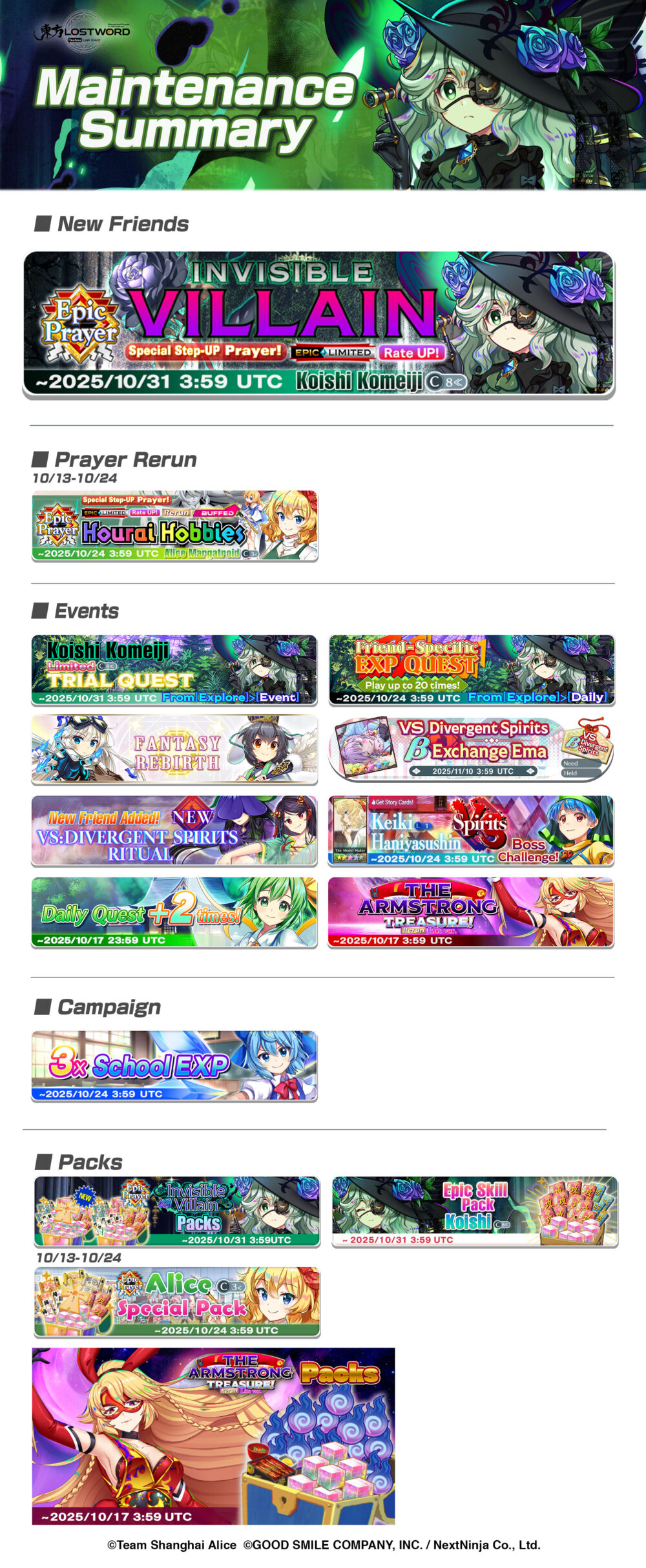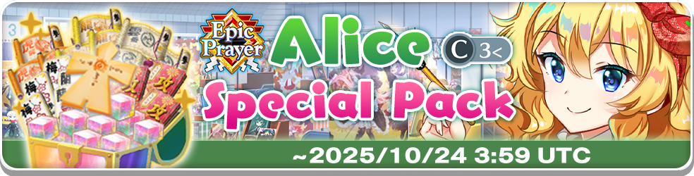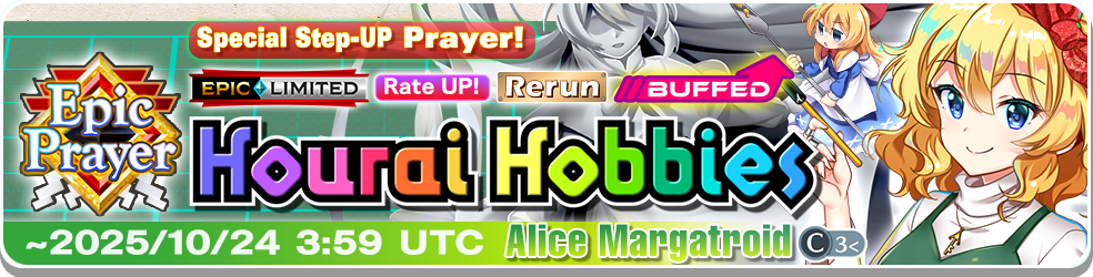 Coinciding with the buffs she received in the last maintenance, Alice Margatroid (C3<) is now available for a limited time in an Epic Prayer rerun!