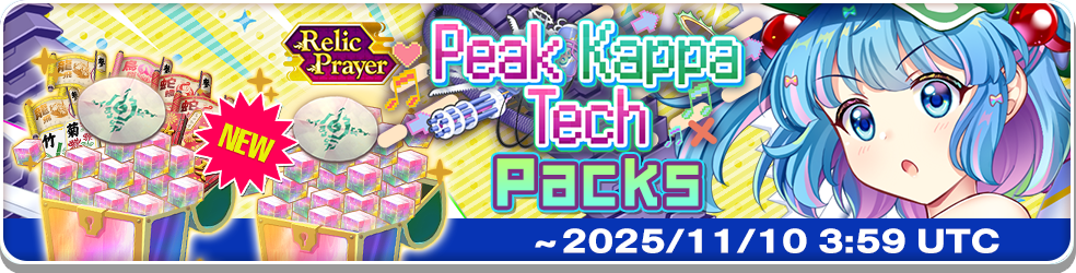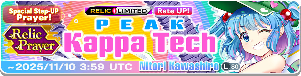 – After this Limited-time Relic Prayer: Peak Kappa Tech finishes, Nitori Kawashiro (L80) will not be added to the Standard Prayer.