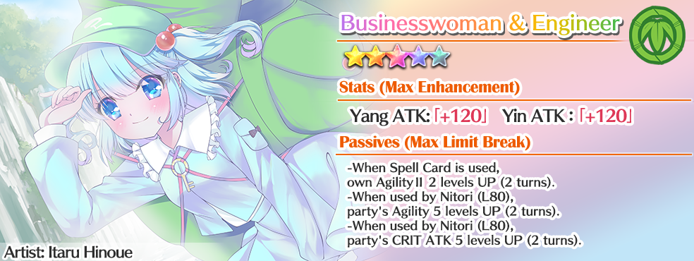 – Nitori Kawashiro (L80) has a higher chance of appearing for a limited time!