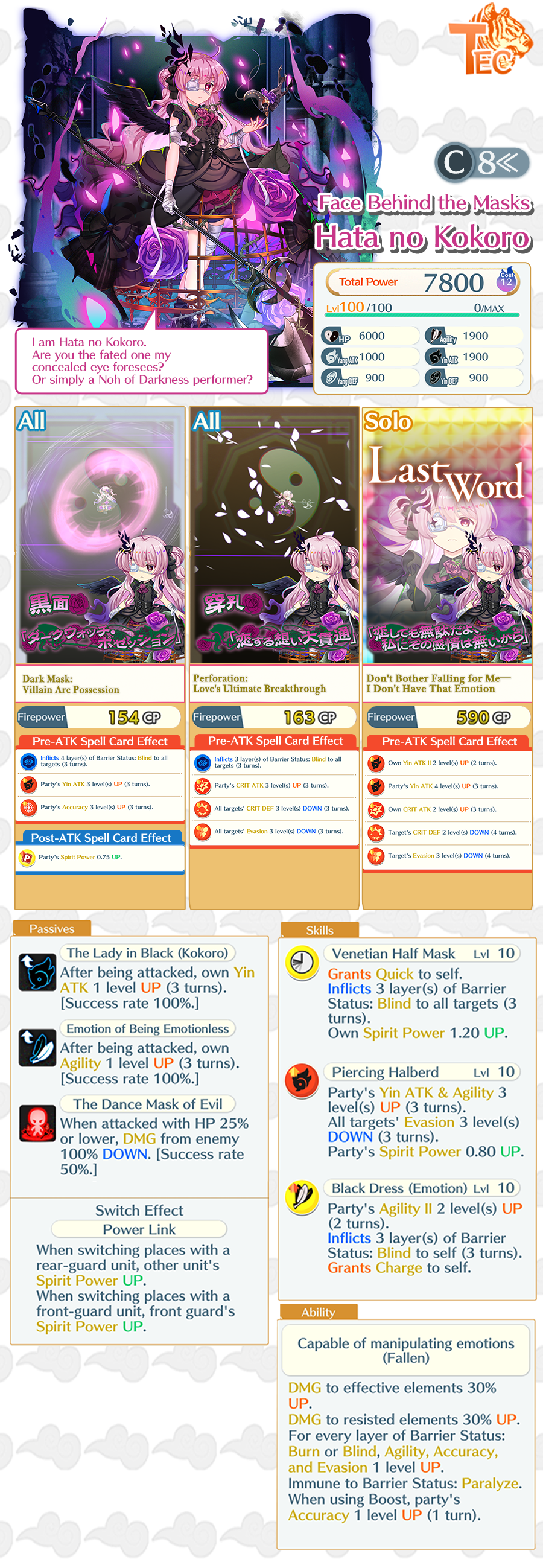 – After the Limited-time Epic Prayer: Villain Masquerade finishes, Hata no Kokoro (C8≪) will not be added to the Standard Prayer.