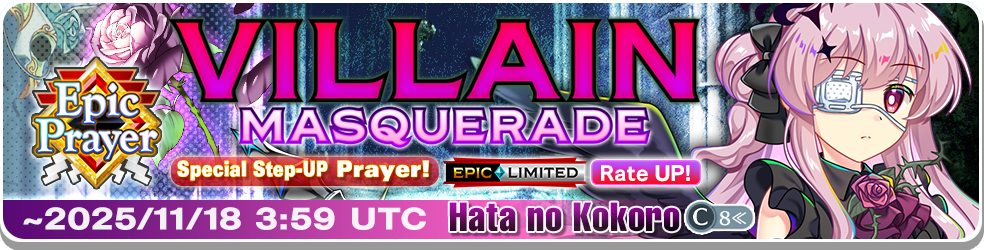 – After the Limited-time Epic Prayer: Villain Masquerade finishes, Hata no Kokoro (C8≪) will not be added to the Standard Prayer.