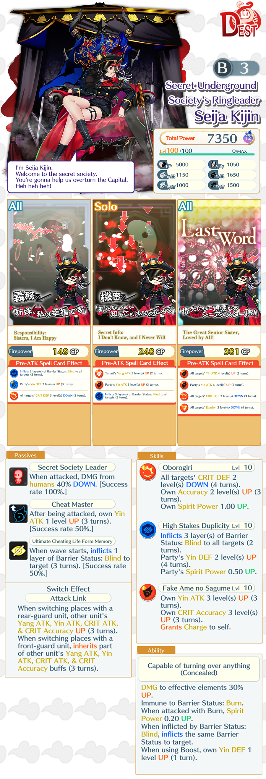 – You can exchange 250 Exchange Points for Seija Kijin (B3) & 50 Exchange Points for the ★5 Story Card “Thunder Beat.”