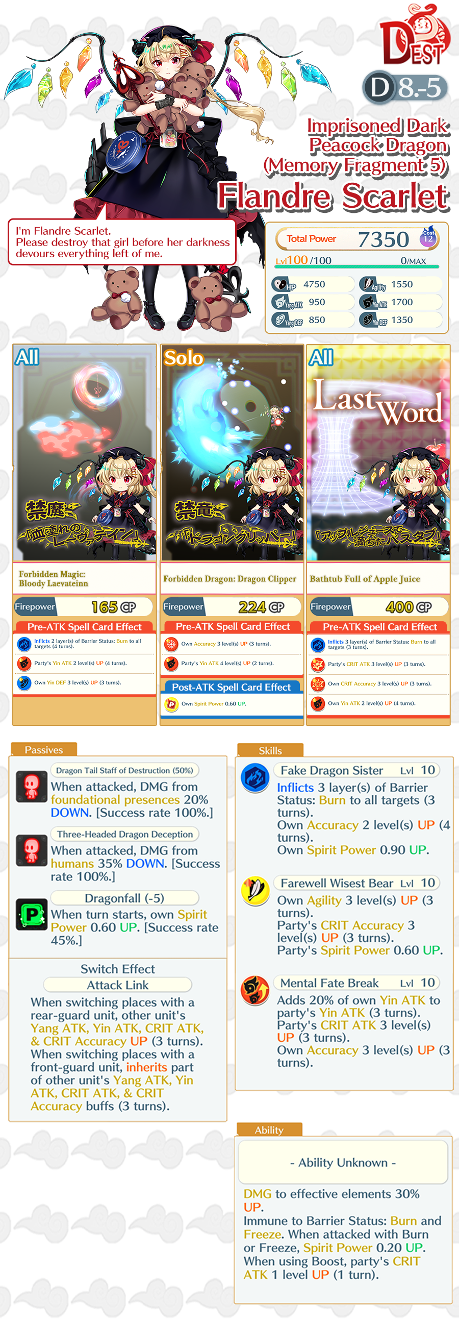 Note: Flandre Scarlet (D8.-5) is only available this Aya Assistance season. She will not be included in subsequent seasons.