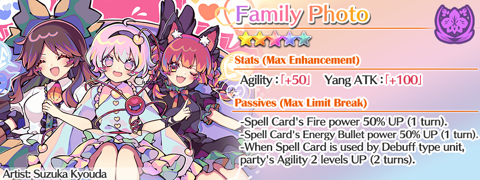 – Flashy Camera: When Focus UP, buffs Yin ATK & Yang ATK, but debuffs Agility.