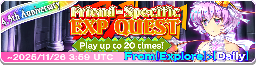 Challenge the stage with the specified Friend and 2 Friends of your choice to get increased EXP!