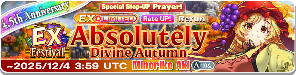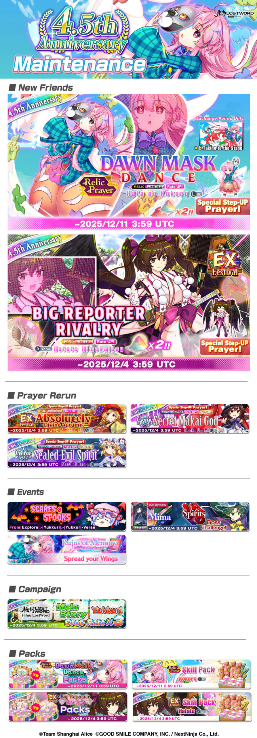 The game will be undergoing maintenance during the period listed below, during which you will not be able to play the game. We apologize for any inconvenience caused during maintenance.