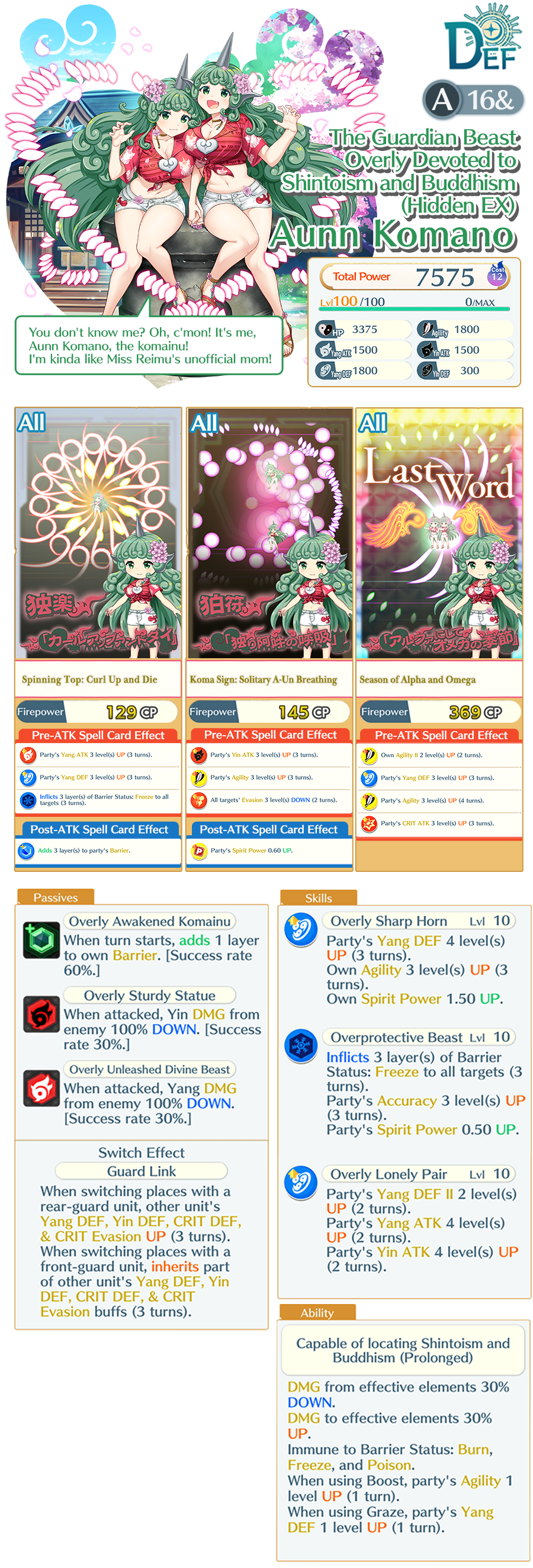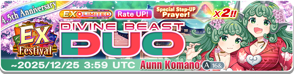 – After the Limited-time Prayer EX Festival: Divine Beast Duo finishes, Aunn Komano (A16&) will not be added to the Standard Prayer.