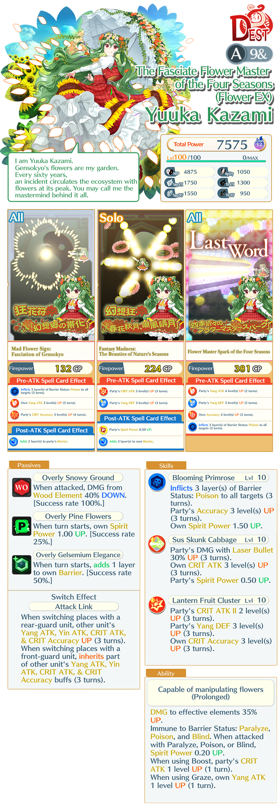 – After the Limited-time Prayer EX Festival: Flower Frenzy finishes, Yuuka Kazami (A9&) will not be added to the Standard Prayer.