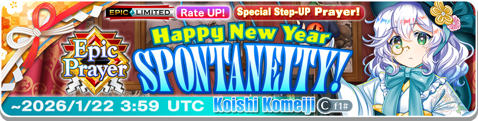 – After the Limited-time Epic Prayer: Happy New Year Spontaneity! finishes, Koishi Komeiji (Cf1#) will not be added to the Standard Prayer.