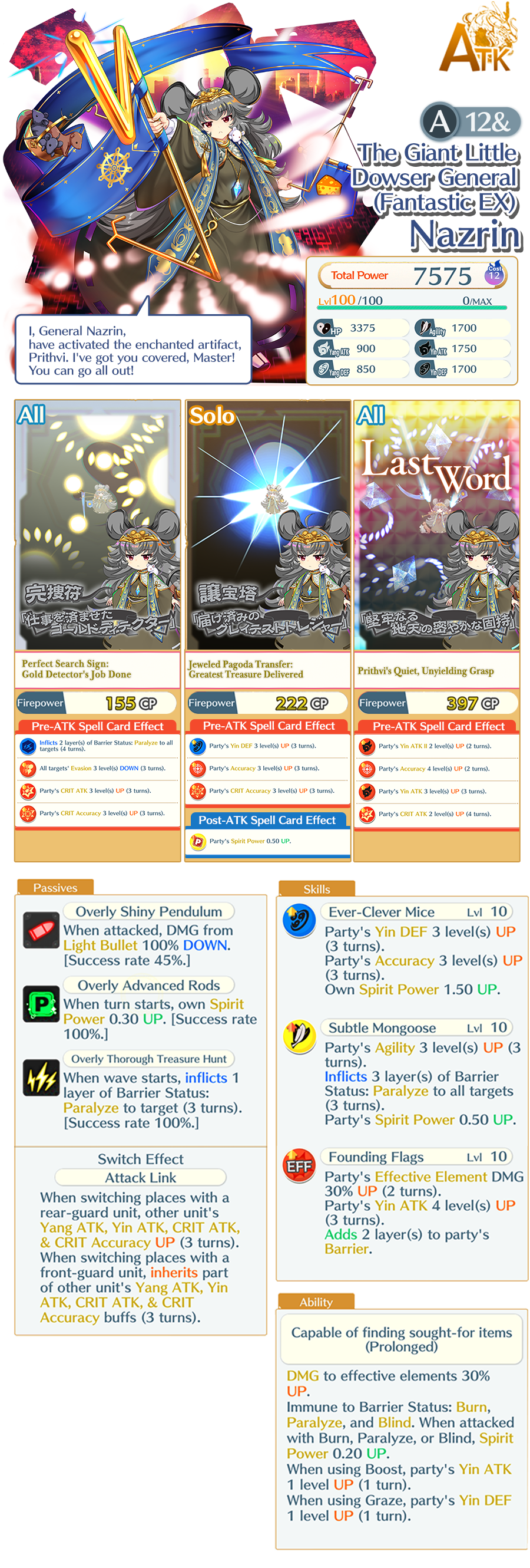 – After the Limited-time Prayer EX Festival: Big Treasure Mouse finishes, Nazrin (A12&) will not be added to the Standard Prayer.