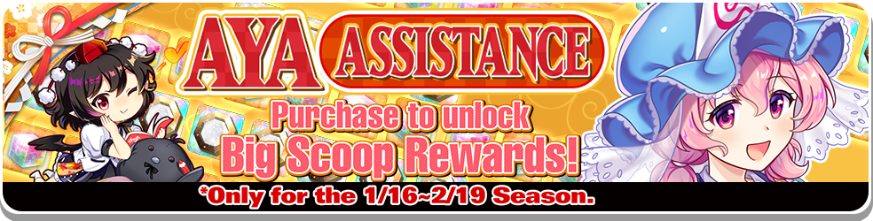 Note: Yuyuko Saigyouji (R2.-5) is only available this Aya Assistance season. She will not be included in subsequent seasons.