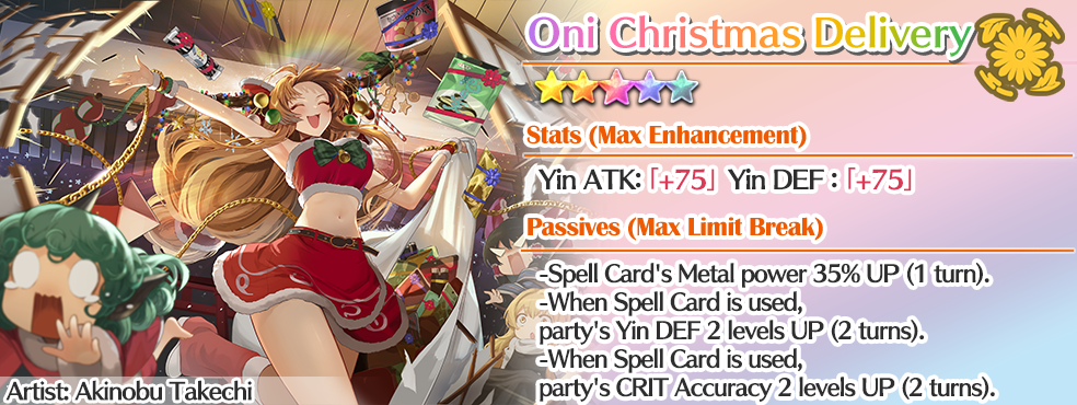Clear Stages and collect Event Points to get ★5 Story Card “Oni Christmas Delivery” & ★5 Story Card “Hauling Presents.”