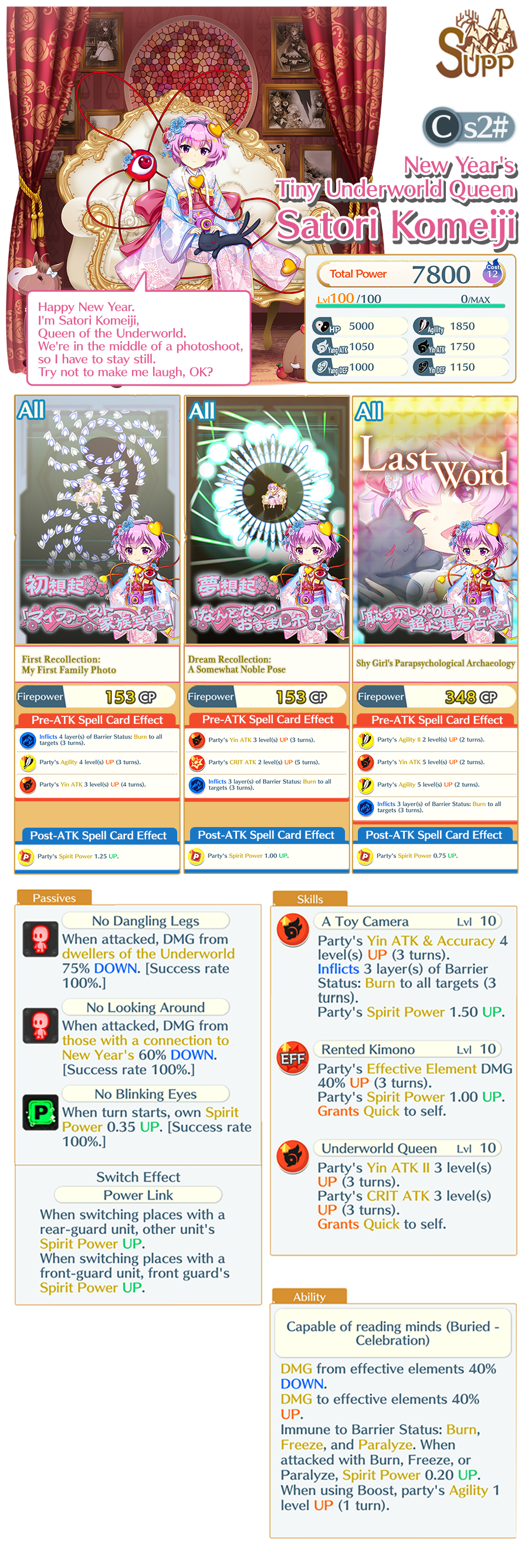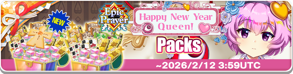 – After the Limited-time Epic Prayer: Happy New Year Queen! finishes, Satori Komeiji (Cs2#) will not be added to the Standard Prayer.