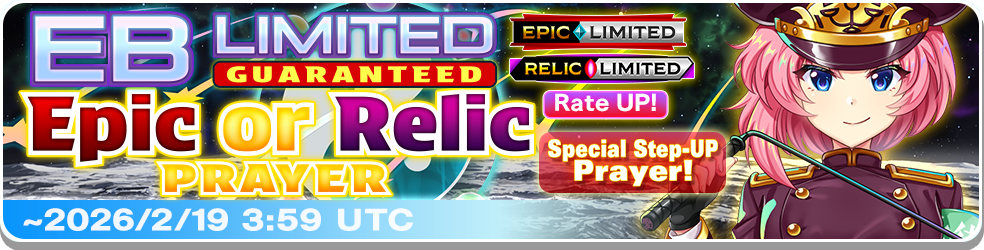 This special Step-Up Prayer features Epic and Relic Friends that have an edge in the Eternal Battle Limited stage! Consider this prayer if you want to sure up your parties for the Eternal Battle with Friends that have Metal or Sun Element attacks.