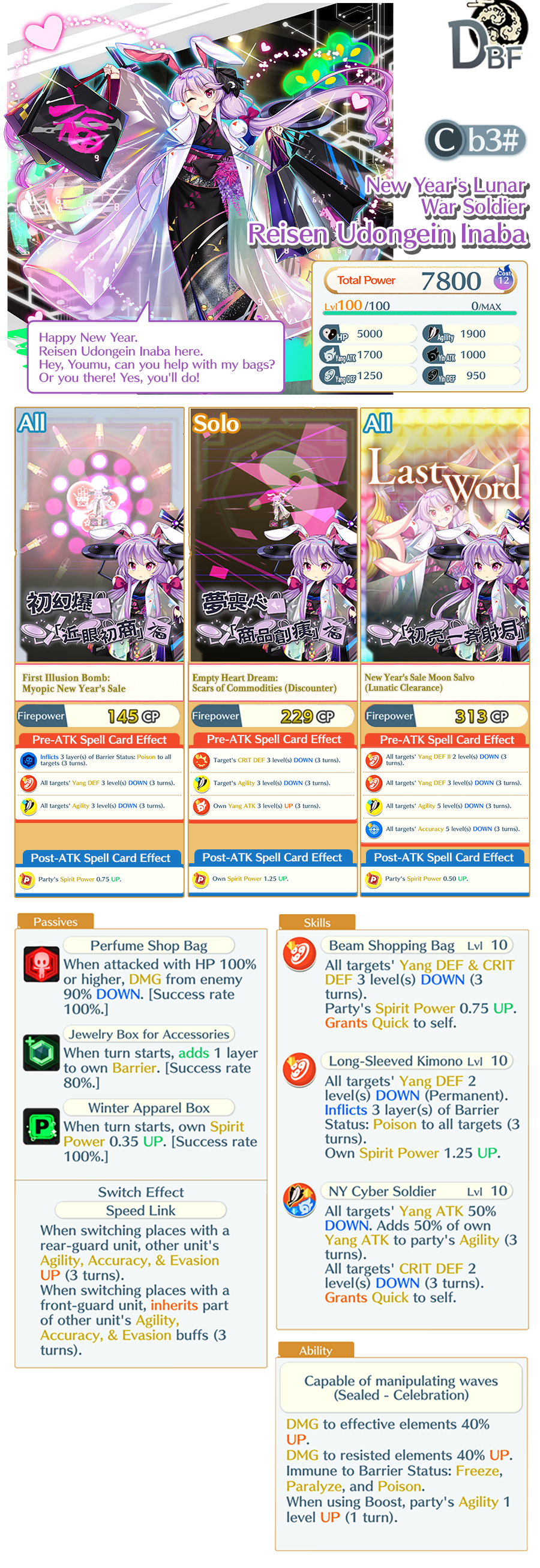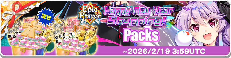 – After the Limited-time Epic Prayer: Happy New Year Shopping! finishes, Reisen Udongein Inaba (Cb3#) will not be added to the Standard Prayer.