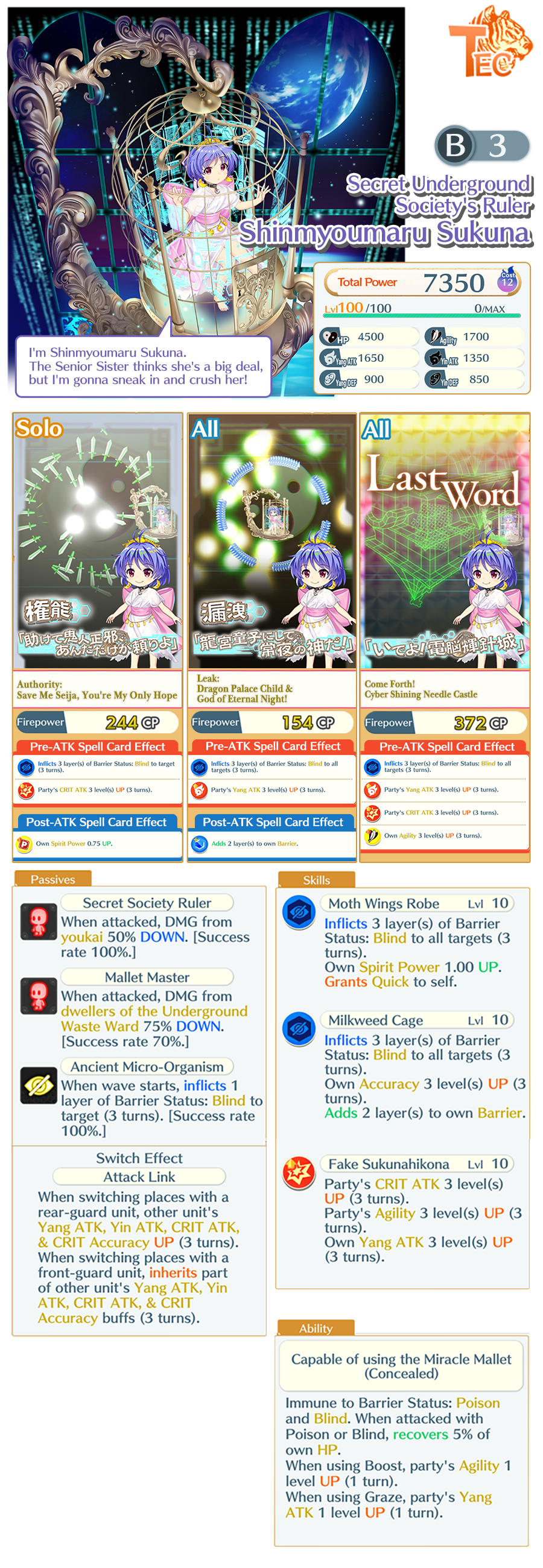 – After the Limited-time Prayer Ultra Festival: Inchling Infiltration finishes, Shinmyoumaru Sukuna (B3) will not be added to the Standard Prayer.