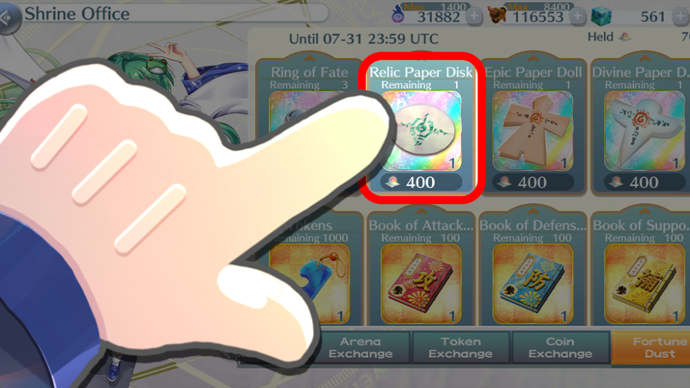 You can exchange 400 Fortune Dust for Relic Paper Disks from Exchange > Shrine Office > Fortune Dust.
