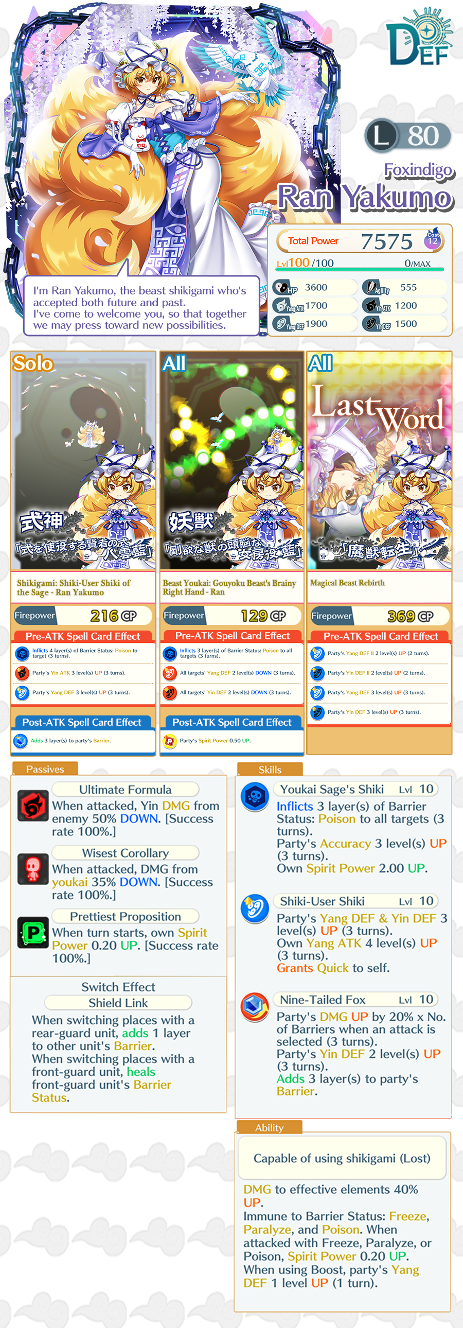 The Fox Paradox Relic Prayer will be available from April 17th! This Prayer also features a new type of Story Card that can only be acquired through Exchange Points, called an MV Anthology Story Card. This Prayer’s MV Anthology Story Card “Old Ran, New Ran” has powerful passives that only activate when used by Ran Yakumo (L80)!