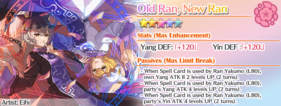 – After this Limited-time Relic Prayer: Fox Paradox finishes, Ran Yakumo (L80) will not be added to the Standard Prayer.
