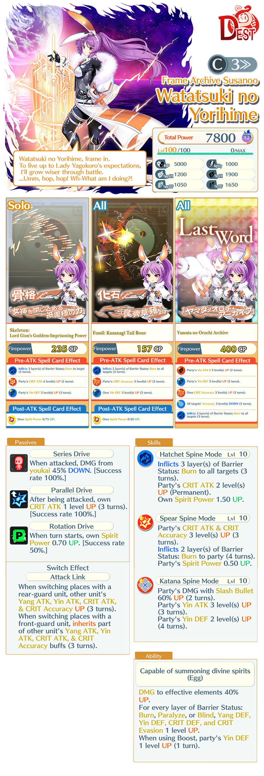 Example: Limit Breaks for Watatsuki no Yorihime (C3≫) require an Epic Paper Doll or the same Friend “Watatsuki no Yorihime (C3≫)” to perform.