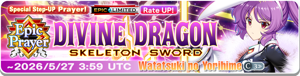 – After the Limited-time Epic Prayer: Divine Dragon Skeleton Sword finishes, Watatsuki no Yorihime (C3≫) will not be added to the Standard Prayer.